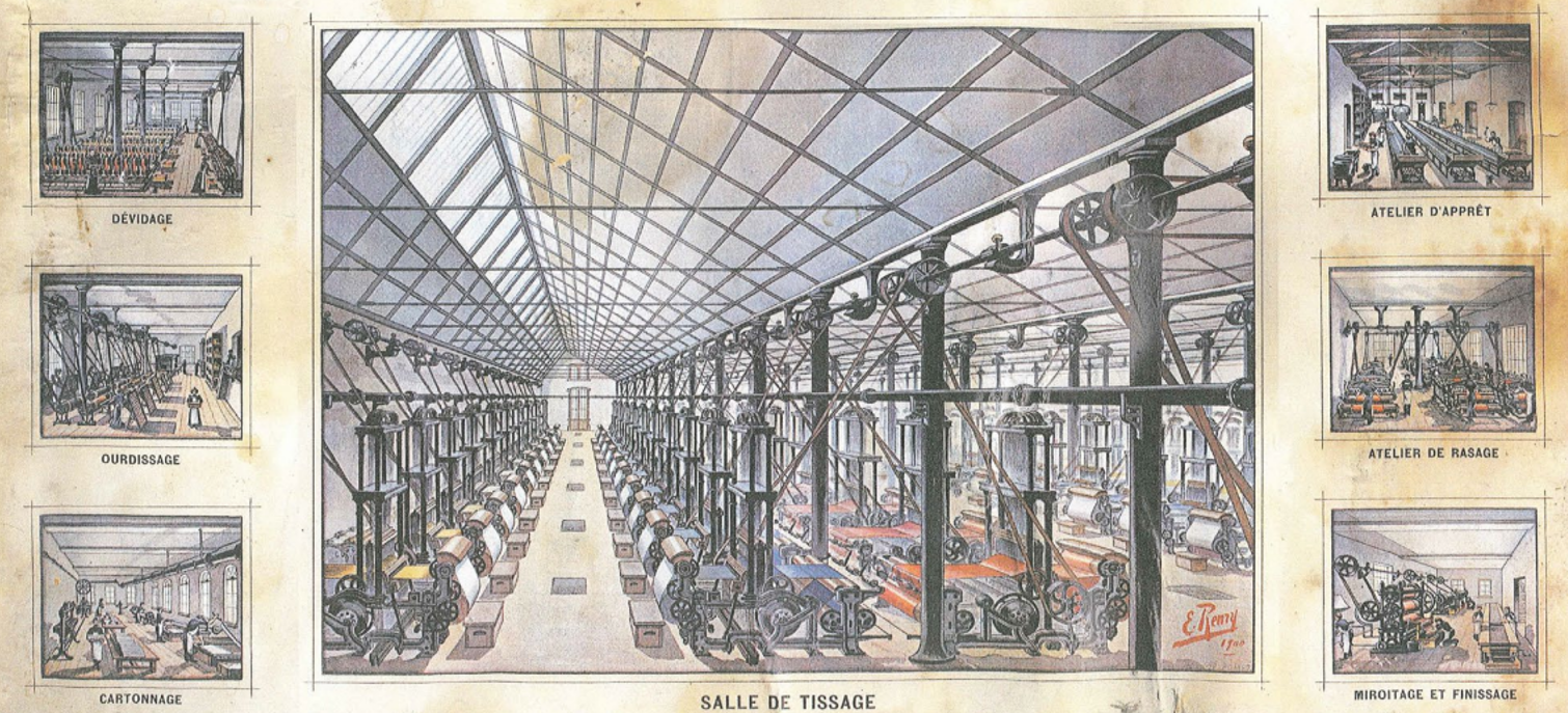 Jusqu’en 1954, de nombreux tisseurs et tisseuses se sont succédés dans cette manufacture. Mais la crise que connaît l’industrie textile française dans les années cinquante entraîne la fermeture de l’entreprise de tissage de velours en décembre 1955. 240 personnes sont licenciées. 20 000 m² de terrains attenant à l’usine et 8000 m² de locaux sont disponibles.